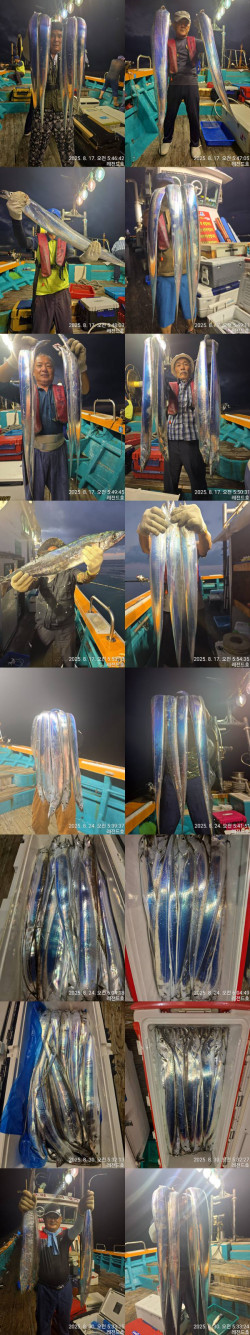 말그대로 오늘도 갈치가미쳤읍니다.8월부터 본격적으로 다님니다.미리 연락 주세요...**왕갈치.한치 vip 16 석으로모십니다.** 출항 장소: 진도 임회면 서망항길 53 ** 조사님들이 낚시하는 자리와 통로가 아주넓어서 편한 낚시.(한번 오셔서 체험해보십시오)** 조사님들의 조황에 최선을 다할것을 약속드리며, 편하고 즐거운 낚시가 되도록 레전드호 선장님 및 사무장님이 도와드리겠습니다. **기상만 좋으면 매일 출조 합니다.** ***예약문의 *** 선장님*** 010-4079-1163 *** 전화 통화 안될시 꼭 문자 남기세요**출조시간***14: 00 시 출항. :상황에 따라서 변동 됩니다### 예약하기 : http://fishinglegend.sunsang24.com/다음카페 : http://cafe.daum.net/f2916네이버 밴드개설!!!:https://band.us/@f2916;밴드 가입 하시면 더빠르게 조황을 확인 할수 있읍니다.#### 구명동의 없으신 분들은 배안에 비치되어있으니 착용하시면 됩니다.(미착용시100만##### 신분증도 꼭챙기시 바랍니다.(미지참시 100만원 이하 과태료가 부과되오니 이 점 꼭 참고해주시기 바랍니다.) ######### 선내에선 음주가 안되는것을 원칙으로 합니다. 조사님들의 많은양해 부탁드립니다.(음주시 100만원 이하 과태료가 부과되오니 이 점 꼭 참고해주시기 바랍니다. ) ####@ 자리배정 : 4분 이상 예약시 자리는 우선 일렬 배정합니다. ( 예--1번부터 4번. 8번부터5번)@ 모든 분들 오시면 배에서 추첨입니다. ( 이틀 이상 출조 시 자리 배정 우선@ 빵구 내시는 분이 너무 많아서 입금액은 출조비 10만원 원칙으로 합니다.(선입금 확인이 안될시 선사임의로 취소 할 수 있습니다. 입금 후 문자주셔야 누락되지 않습니다.)@ 기상악화와 5일 이전에 취소하시면 100% 환불 해 드립니다. .... 5일이후 취소는 환불불가입니다. @ 입금 계좌 : 수협 530 61 019532@ 선사제공 : ,저녘,야식 ,기둥줄, 추, 미끼, 음료수, 커피, , 라면, 얼음(멀미약은 제공되지 않습니다. 멀미약은 드시고 와야합니다.)@ 개인준비물 :신분증,구명조끼, 낚싯대 바늘 전동릴, 장갑, 집어등, 칼,쪽가위@ 매장대여 : 낚싯대 + SIMANO전동릴 - 3만원(예약전화시 함께 말씀해주십시요.)쿨러1만 &&&&& : 같이할수있는 단체.동호회팀환영합니다.*** 진도 레전드피싱 예약 안내 ***예약문의 : 010-4079-1163오시는길 : 전남 진도군 임회면 서망항길 53홈페이지 : http://fishinglegend.sunsang24.com/ @ 7 월31 일 목요일 : 자리여유@ 8 월 1 일 금요일 : 자리여유@ 8 월 2일 토요일 : 예약마감 @ 8 월 3 일 일요일 : 예약마감@ 8 월 4 일 월요일 : 자리여유@ 8 월 5 일 화요일 : 자리여유@ 8 월6 일 수요일 : 예약마감